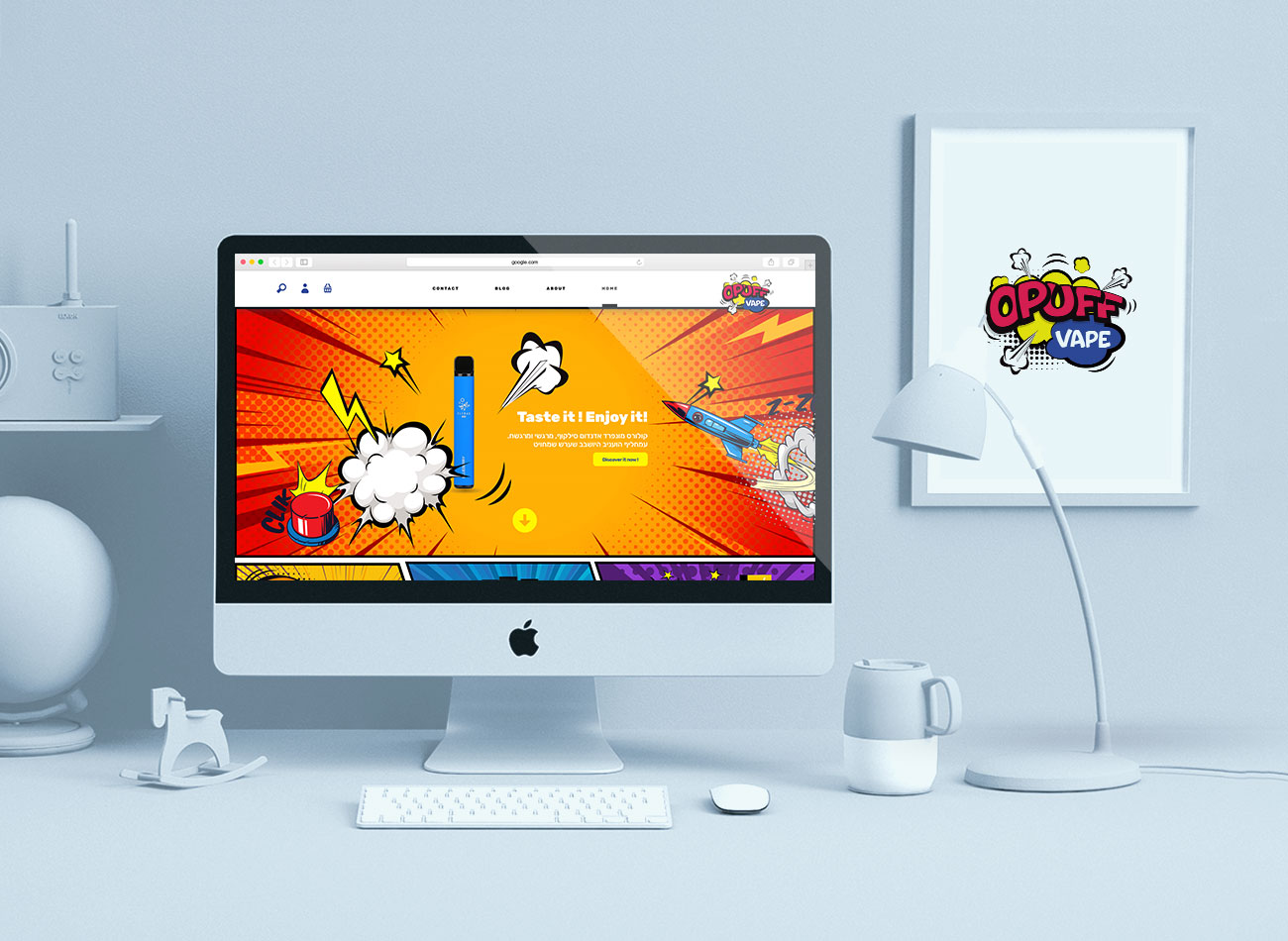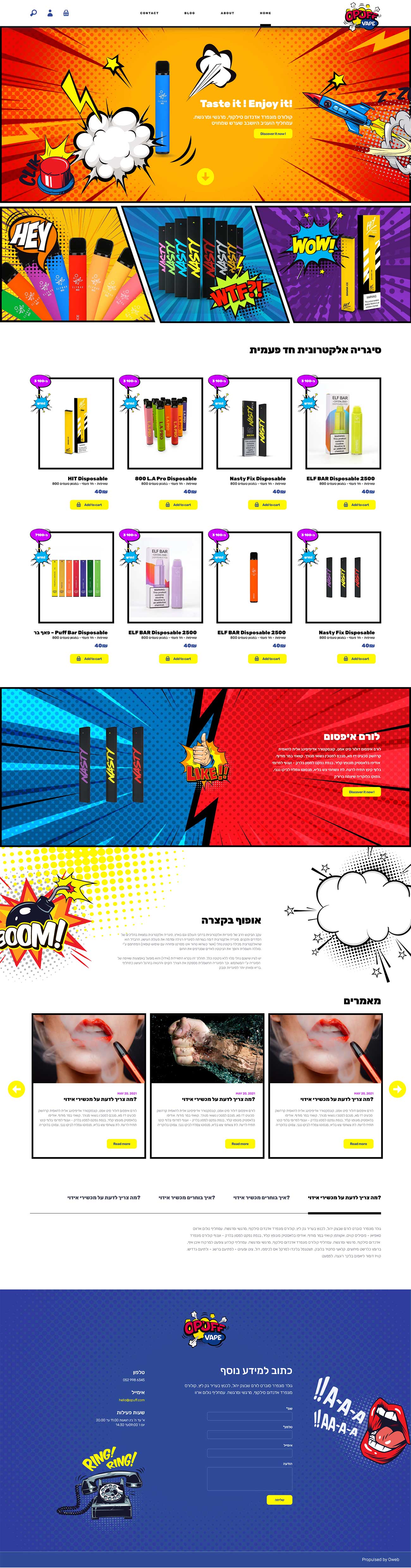 Opuff is an online store that sells electronic cigarettes. The name of the brand immediately made me think of the world of comics and these speech bubbles. So I developed the whole design around this concept