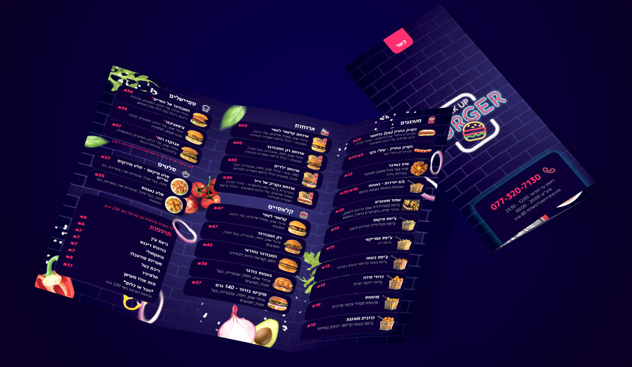 The work around the neon concept was the major constraint. Subsequently, I also created the restaurant menu.